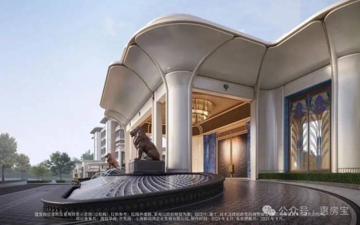 项目大门口标配的铜狮庄严中透出几分摩登腔调。