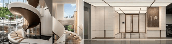 1. 全天候归家系统:业主经由垂直电梯直接入户,实现全程人车分流的尊崇体验,无论风雨,都能从容归家;
