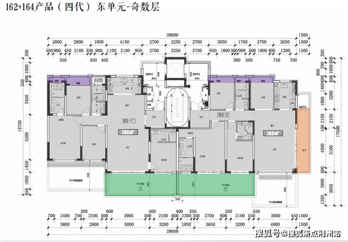 l 四代洋房(建面约162/164㎡):全系四房起步,1梯2户设计,4房2厅3卫