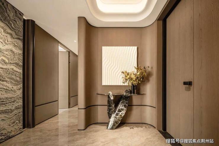 由GOA大象设计总建筑师、北京顺景园林景观规划院院长等名家执笔,项目将濠河灵韵与张謇园林美学融贯其中。入口处,珍稀维纳多石材与景泰蓝奢石相对辉映,树龄逾六十载的罗汉松恭迎归家。穿过环川门,庭、院、水、石渐次铺陈,每一步皆如行画中。