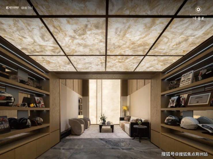 顶层茶室与露台营造山水意境,地下雅集空间木格栅、透光墙勾勒 “举杯邀月” 之境,夹层赛车展廊则平衡了雅静与动感。