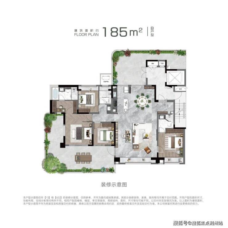 户型配置:约150㎡、185㎡、220㎡,户均约33-77㎡空中庭院