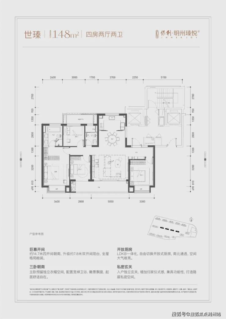 建面约104-148m²方定制空间,回应改善需求,户户设计玄关,大开间、短进深,以宽景大阳台揽怀自然逸趣。
