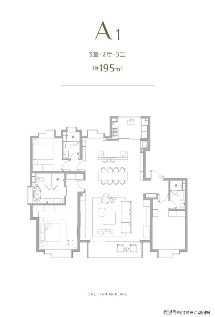 而另一个大户型175㎡,也几乎是195㎡的缩小版,同样三套房的设计保证了超强的舒适度。
