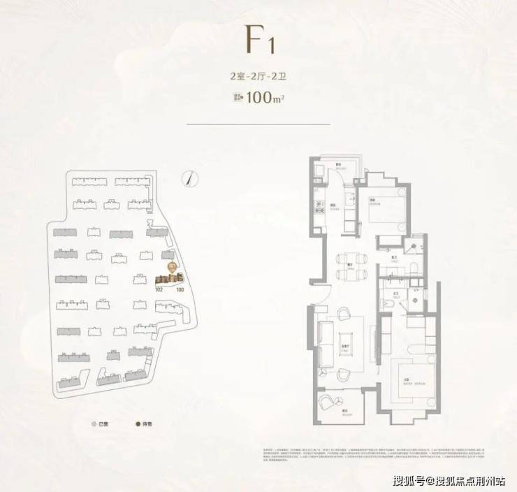 最后,来看户型图:建面约100㎡2房2卫,这是整个天安1号B区唯一一个总价在千万以内的产品,上车首选。