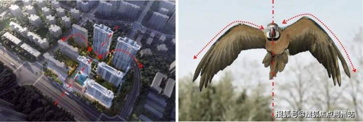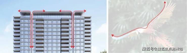 项目立面设计灵感源于崔颢名句“晴川历历汉阳树,芳草萋萋鹦鹉洲”,以“江鹦展翅”为意象,将鹦鹉所寓意的智慧、自由与吉祥融入建筑立面语言,实现传统文化与现代幕墙技艺的深度融合:项目地块南侧临鹦鹉大道及汉阳江畔,立面以流线型曲线勾勒舒展形态,搭配金色金属线条,再现江畔群鹦展翅的灵动场景,呼应自由与吉祥的象征。