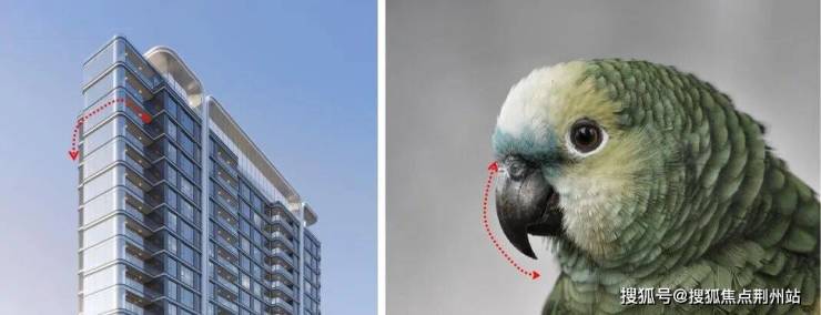 提取鹦鹉曲喙作为智慧与技术的视觉符号,运用于全景舱弧形窗系统。曲线幕墙最大化引景入室,提升视野开阔度与居住品质,体现科学与美学的统一。