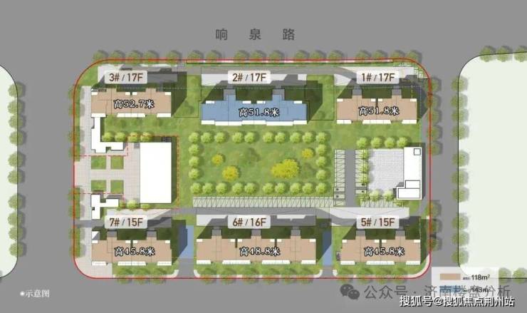 项目容积率仅2.2,共规划415套房源,包含6栋15-17层中高层住宅,除2号楼为143平四室两厅两卫外,其他五栋楼均为118平三室两厅两卫,整盘均为四代宅产品