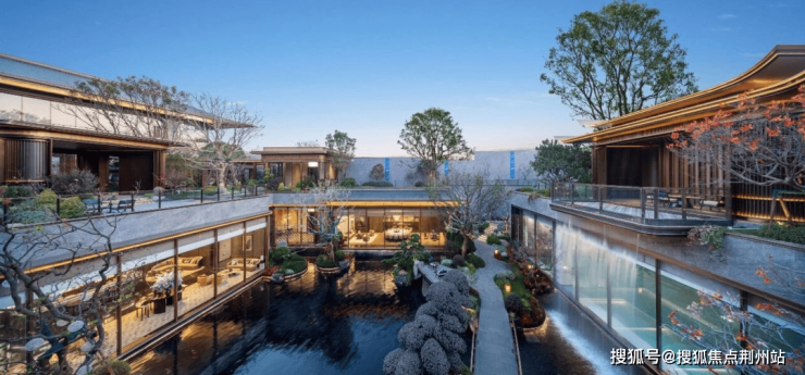 地上归家礼序井然,以约16米高、81米宽的东方门楼为序,开启“三进"归家礼序,一进府门,气象万千;二进景观游廊,廊院婉转,水景映天;三进瀑布庭院,飞瀑叠水,桥影横斜。三大景观轴铺就沿途风景,步移景异。