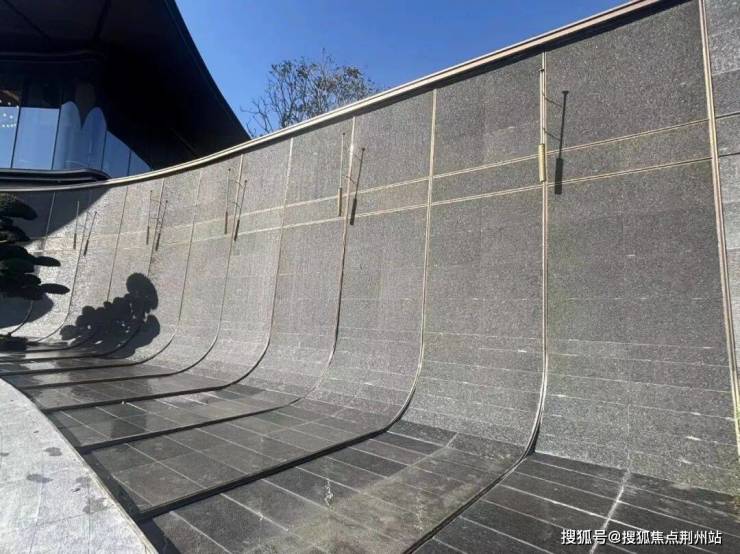 流水景墙,石材流水面摒弃了繁复的装饰,以简洁的几何形状呈现,表面光滑平整,纹理自然流畅,纯粹而质朴的美感。