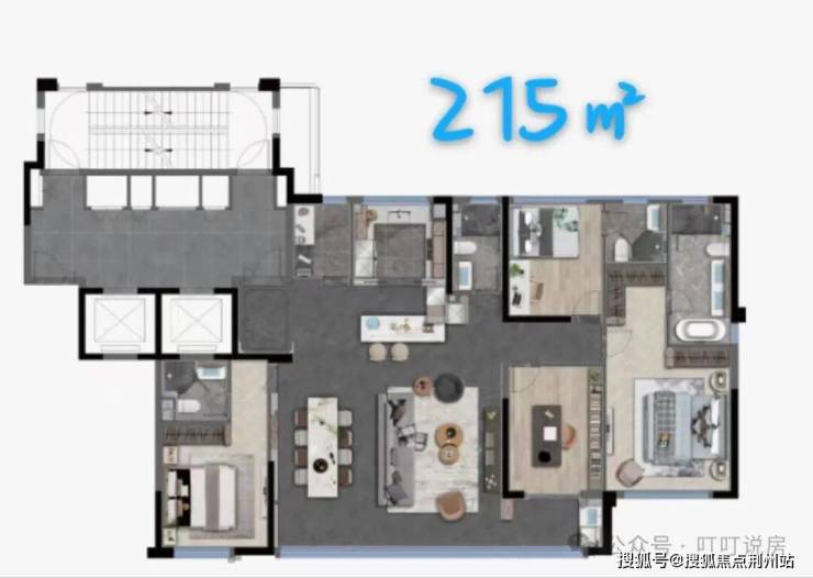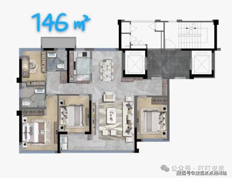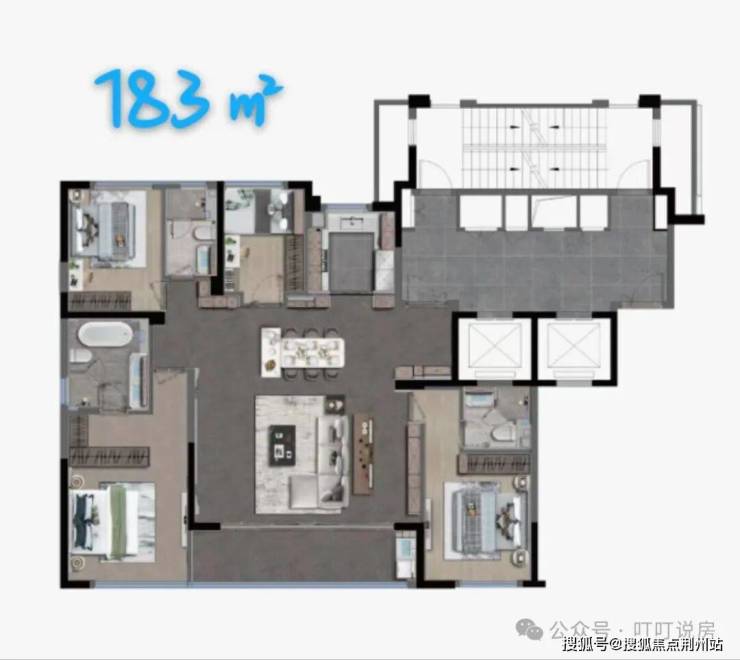 四房两厅三卫,两梯两户。