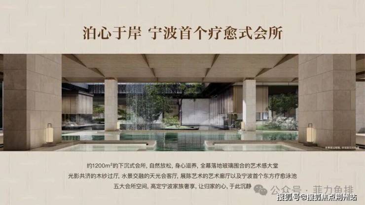 文化赋能:约1300㎡下沉式会所植入宋代“点茶、焚香、挂画、插花”四雅生活,溯源王阳明“知行合一”哲学,融合宁波宋代港口文化与史氏望族传统,打造东方疗愈空间;