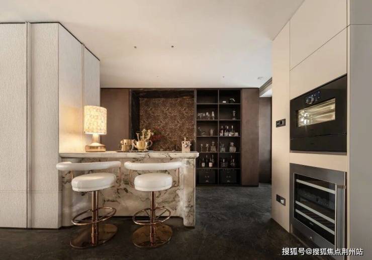 为一块奢石弧形工艺,投入翻倍的成本,整屋坚持用一种昂贵的木饰面贯通始终,从而实现整体艺术风格的统一。