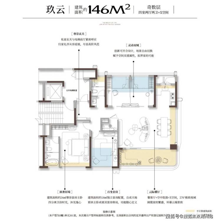 得益于四代宅规划,项目的得房率95%起,大户型得房率突破100%。