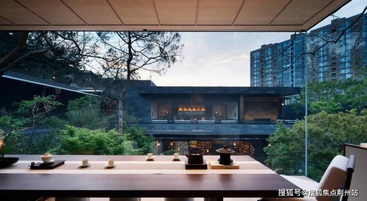 场地规划深谙中国传统园林的空间叙事逻辑, 层序渐进、步移景异。自场地南侧门廊步入,穿过前庭院,城市喧嚣逐渐退却,大隐于市之感油然而生。庭院中山、林、池、泉、瀑、溪、涧、桥……自然意趣错落交织;琴、棋、书、画、酒、诗、茶、香……雅逸生活徐徐展开。
