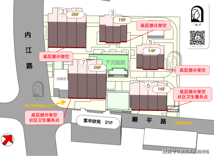 保障房底层更结合内江路出入口,将车库入口也设置于此,流线组织清晰高效。