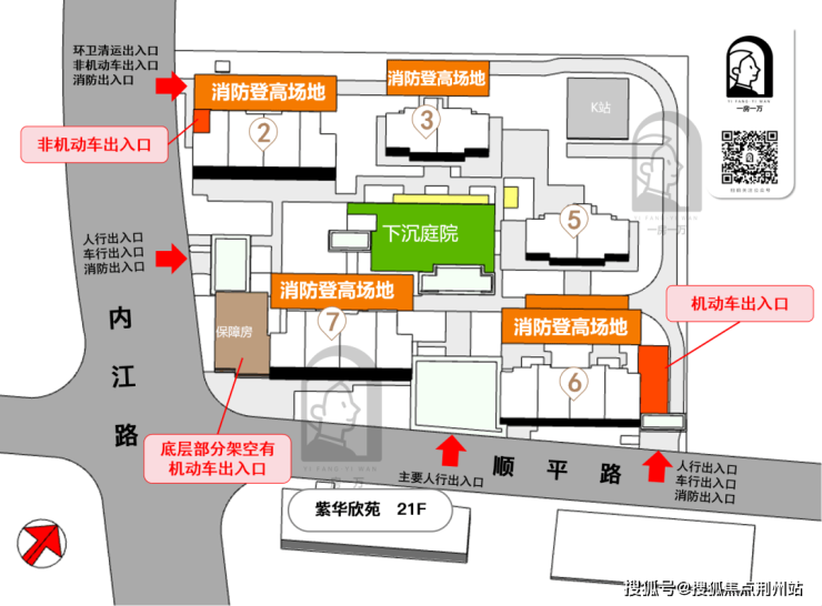 人车分流成为现在商品房的基本要素,项目消防通道与消防登高地相结合,进一步节省了用地空间。