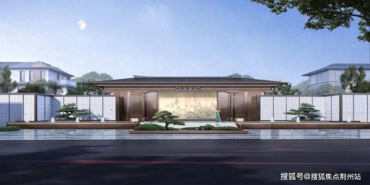 凤鸣雲庐沿街面尺度约44米的高奢主入口,令门庭礼序自入境就已然彰显。景墙之上的《千里江山图》,将恢弘的江山画卷、青绿山水搬至门前。入口台阶门楣越级,高质感石材更显简约气度,以及水景、绿植等多重细节景观构建,让每一次归家都浩然立序。