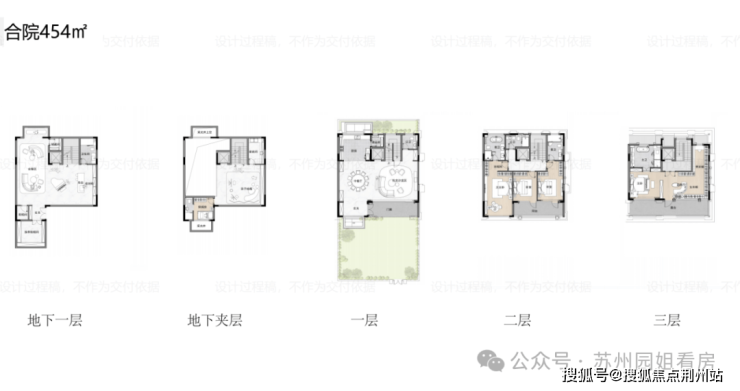 联排建面约425-711㎡,户型如下——