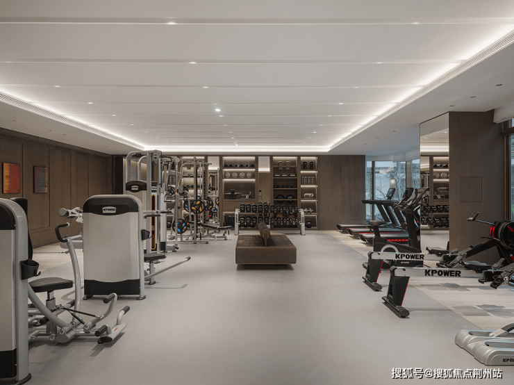 健身空间,约200㎡,包含了健身房与瑜伽室两大空间,史密斯机、龙门架、跑步机等力量、有氧、塑形的专业器材相当齐全,配置水准已经很接近专业健身中心了。