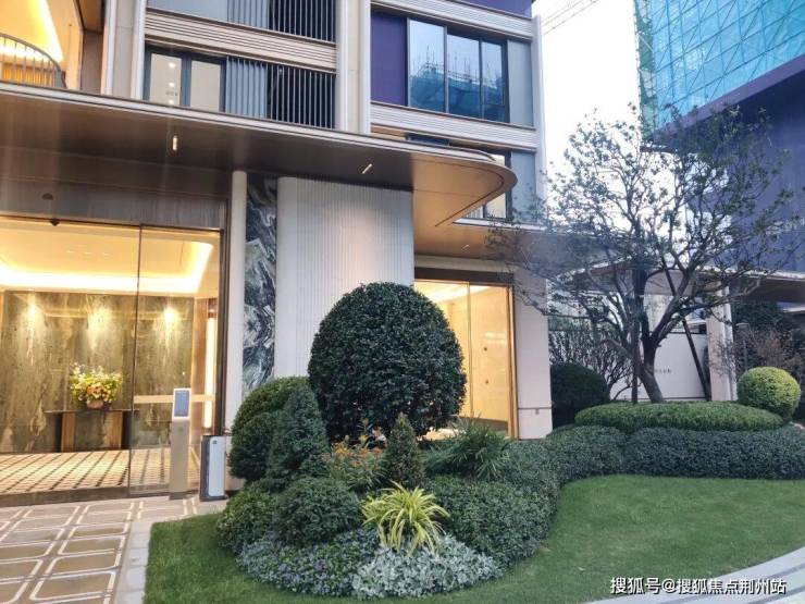 1.门头设计和做工很不错,让我看到了一个“不套娃”的滨江,甚至相比起浩运府,我更喜欢这个门头(当然很多人会更喜欢浩运府的门头),高级感有了,石材用足了,审美品位也在了。我们换个角度再看一下这个接近80米的门头: