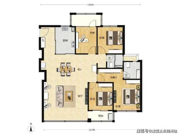 - 100㎡ 三房两卫(刚需):三开间朝南,6米阳台,主卧套间,全明通透,刚需首选