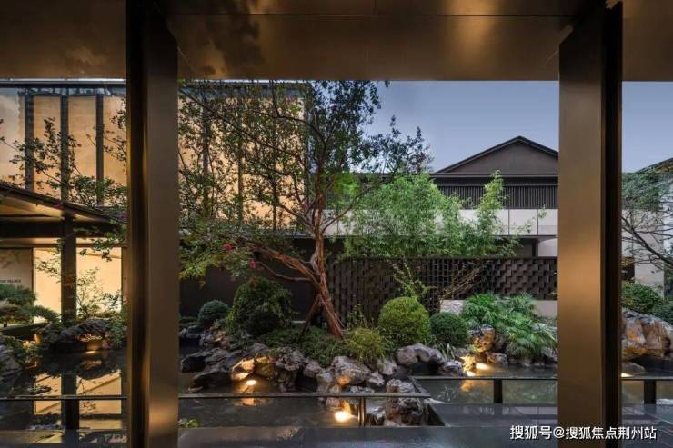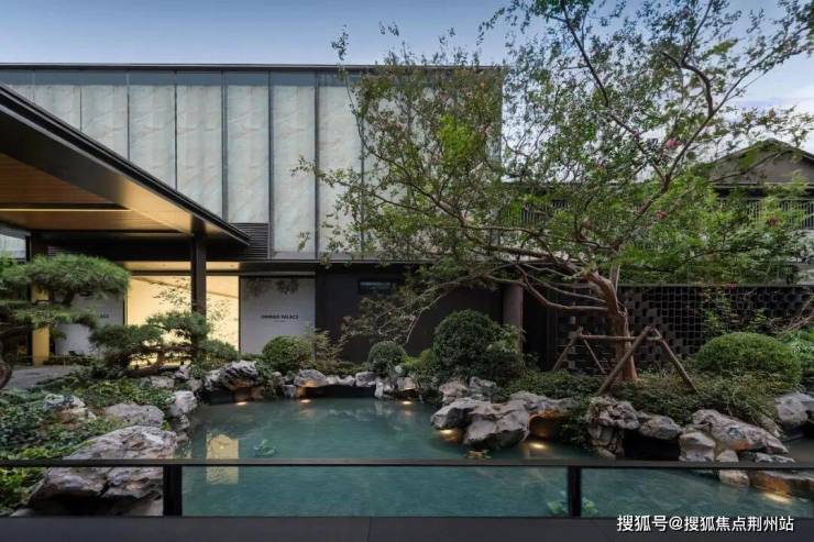 穿过门庭,园林意境渐次展开。狮山金茂府的园林,不仿古,而取意。它并未简单复刻古典形式,而是精准捕捉了苏州园林“门庭-庭院-厅堂-园景”的四进韵律,让人从城市的喧哗中,逐步沉入社区的静谧。