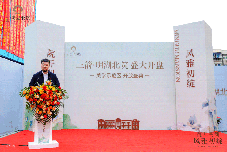 同圆设计集团股份有限公司副总经理曹天晴、山东三箭建设工程管理有限公司董事长孙小凯、山东三箭房地产开发有限公司董事长武玉强分别上台,同到场嘉宾分享项目的产品理念、精品工程的匠心打造、开发理念和美好愿景,表达了三箭·明湖北院不仅是对土地的致敬,更是对城市未来生活的深度思考。更期待三箭·明湖北院能够成为大家理想生活的承载,与这座城市共同生长、共赴美好的希冀。