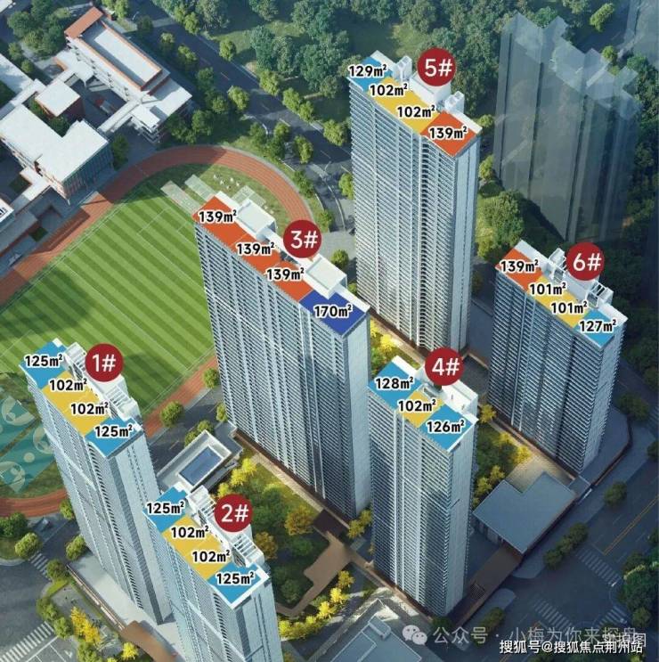 项目占地面积约7.43万方,总建筑面积约24.2万方,其中住宅约11.7万方,学校约3.7万方,整体容积率2.14,该项目总共包含6栋33-47层的高层、超高层住宅,总户数964户,户均建面约121㎡。该项目打造准四代产品,该项目最大亮点就是自带一所九年一贯制公办外语特色学校,即武汉外国语学校小语种基地学校。该学校已于2025年3月顺利通过主体结构验收,预计2025年9月投入使用。该学校小学36班,初中30班。所以这个学校的规模是非常大的啊。