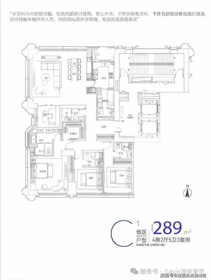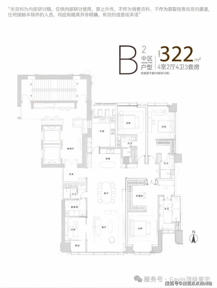 ·B·建面约317㎡-318㎡-322㎡,奢阔四室户型,LDKB+X一体通透化设计,公共空间阔绰通透,每间卧室都是套房设计,书房可灵活改造为茶室、健身房,满足多元场景。