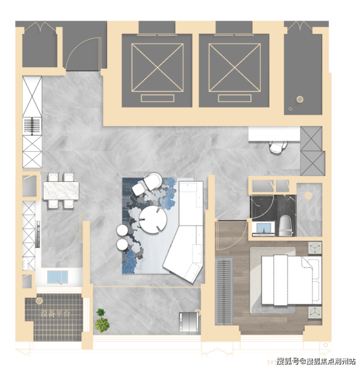 其中3#为超高层,北向可观小区绿化和苏河景观,高区可瞰三件套盛景。