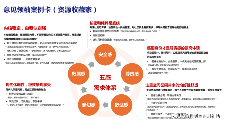 他把客户需求全部转译到:安全感、尊贵感、舒适感、亲切感、归属感、安全感这五大需求体系