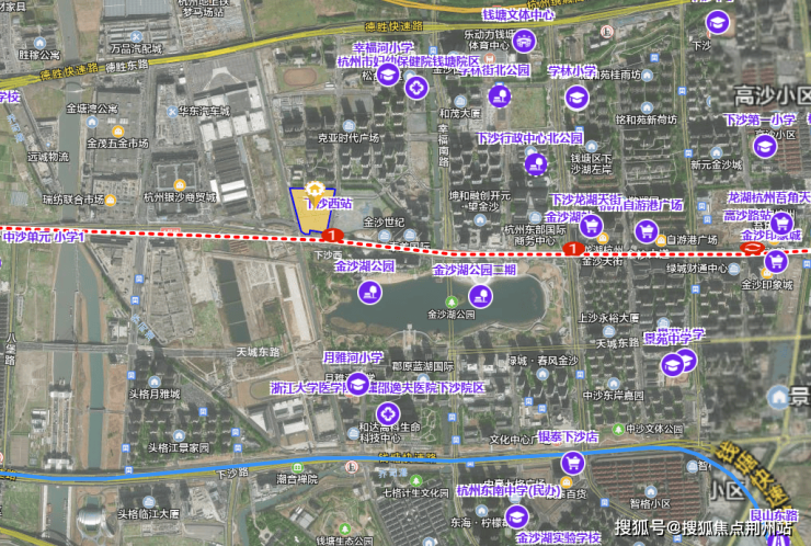 从月映金沙出发,直线距离约50米,就是地铁1号线下沙西站,真正的地铁房!