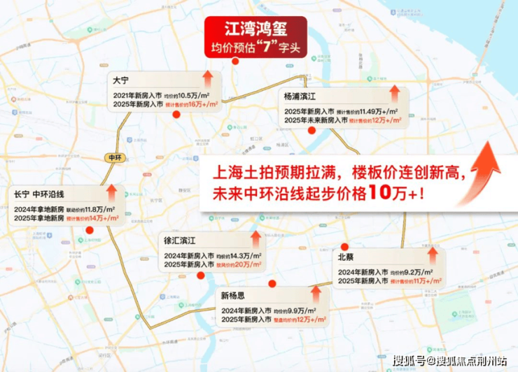 尤其是中环沿线,续徐汇滨江之后,长宁天山,静安大宁,杨浦滨江,浦东北蔡、新杨思等区域相续迎来单价“地王”,未来售价不断加码。不难发现,中环沿线未来起步价格将会是10万+/㎡!