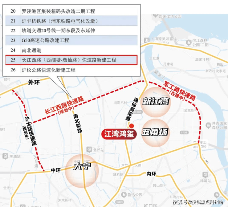 军工路快速路新建工程预计今年年内完工,意味中环北抬今年将迈出重要一步,而长江西路快速路已被列入2025年上海市重大工程清单,预计即将开工。
