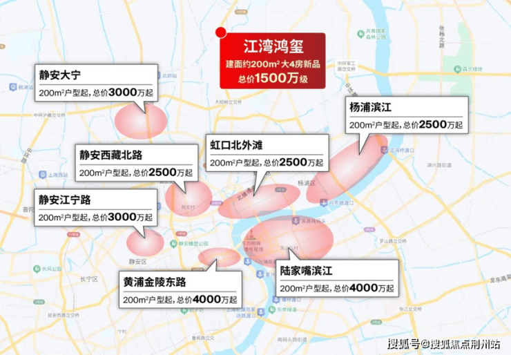 另一方面,在如今普遍约10万+的上海中环沿线,以1500万级的价格就能买建面约200㎡起大4房,目前只有江湾鸿玺一盘。