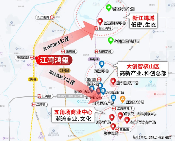 项目与五角场商业中心、大创智核心区、新江湾城相距不过3公里,一脚油门即可到达。
