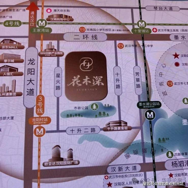 整个汉阳的城市格局基本上是钟家村、王家湾双轮驱动,钟家村、王家湾、四新三足鼎立。而王家湾因为发展空间更大,交通四通八达,发展势头早已超越了汉阳的老城区钟家村,花木深就位于王家湾,临近二环线,周边有三条地铁环绕,距离其中的3号线龙阳村站和在建的12号线墨水湖公园站仅仅约300米,距离地铁4号线王家湾站约1.2公里。