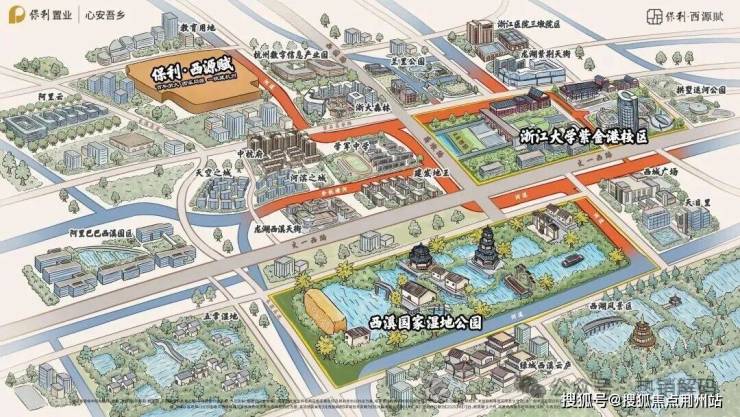 保利置业·西源赋直线距离浙大紫金港仅约1.3公里,也是环浙大紫金港一圈的唯一待售新盘。