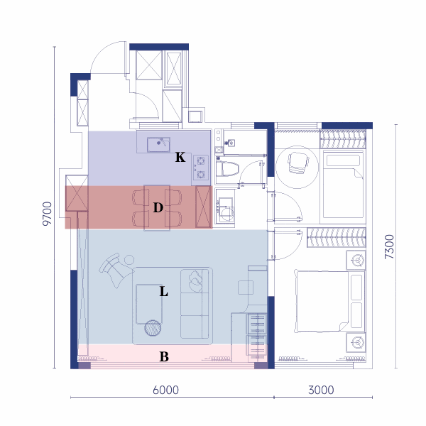 建面约69㎡-88㎡户型,可将北向卧室纳入主卧套房体系,加持主卧功能区(衣帽间/工作室/电竞房),实现绝对私属的物理边界。