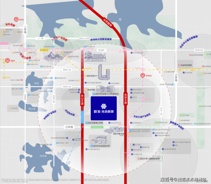 约3公里范围内辐射光谷软件园、北辰光谷里、保利国际、光谷K11、万象天地(在建中)等核心商务商业中心,坐拥千亿产业带。