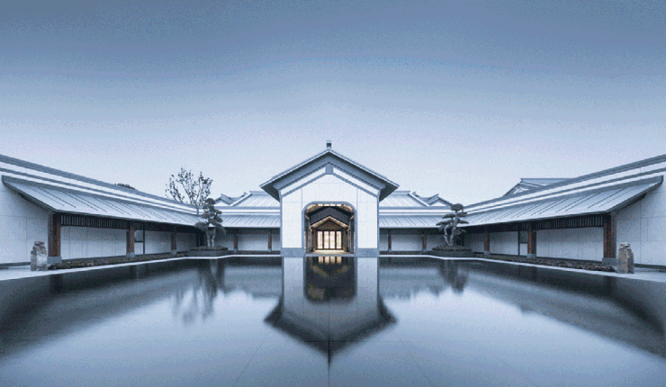 合院外立面汲取苏派宅邸的歇山重檐、黛墨青瓦以及飞檐戗角等经典元素,保留“门堂求正、廊轩求变、纹饰求韵”的格局,隐逸而有力,东方建筑的神韵与语境一下子就被渲染了出来。