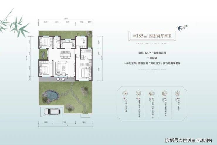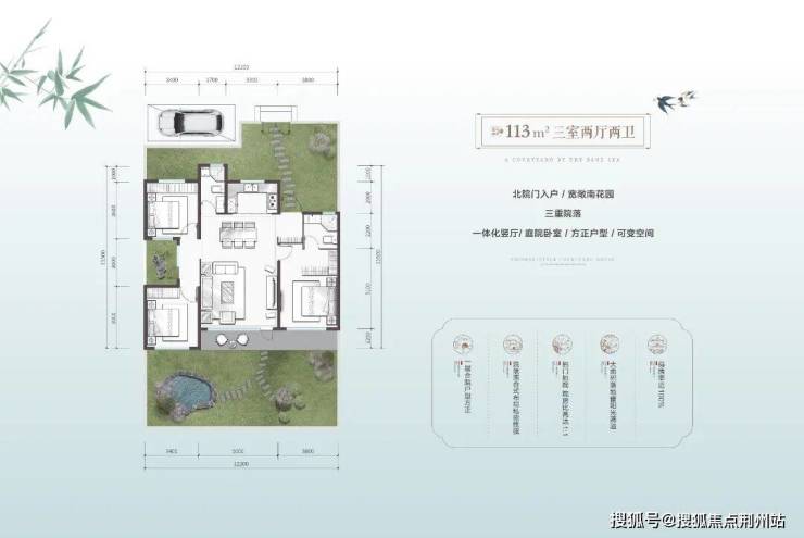 更惊喜的还得是「私家庭院」,三重庭院的设计,创立了以院落为中心的居住氛围,每个房间都能与院落发生互动关系,国人或者东方的人居理想就在这一围一合之间实现。