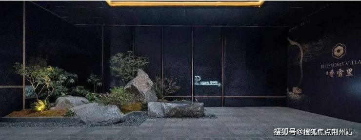 大门跨度达50米,本项目并未一味追求宏大规模,反而倾心于内敛的奢华风格。入口处墙面精心选用了亚马逊黑奢石,其色泽深沉而富有层次,纹理别具一格,彰显出一种沉静与尊贵的气质。而对景墙则以亚马逊绿奢石打造,中央巧妙镶嵌金石,刻画出项目Logo,并镌刻“香雪里”之名,以及超山特有的六瓣梅花图腾,形成一道视觉上令人赞叹的风景线。