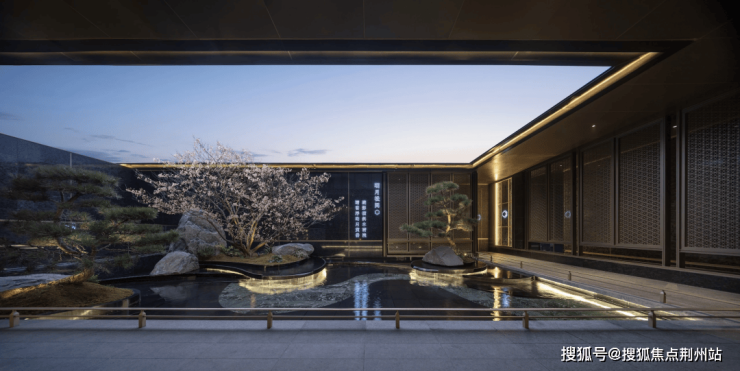 漫步于光影交织的幽静庭院,您将踏入一方充满诗意的天地。潺潺流水映照着婆娑树影,挺拔树姿为这片空间注入向上的生机,纵向延伸出无限的视觉张力。这座下沉庭院,不仅拉近了建筑与自然的情感共鸣,更使室内与景观紧密相连、和谐相融。每一扇窗户,都犹如框中的一幅生动山水画。