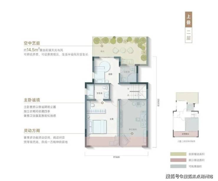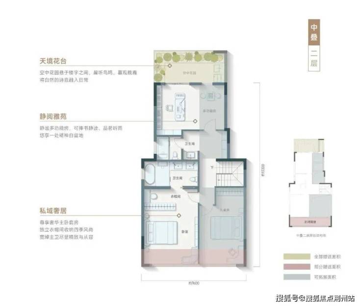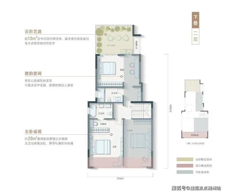 上叠(约 240㎡):空中花园 + 超大露台,270° 湖景视野,星空私域,城市顶豪体验。