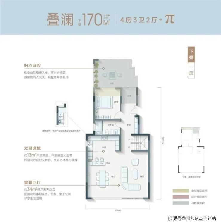下叠(约 170㎡):私家庭院 + 地下拓展,横厅宽幕采光,一层敬老房,双层奢适格局。