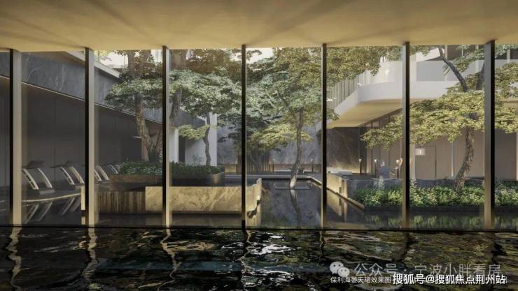 此外,以回廊式度假酒店空间,配备恒温泳池、健身房、下沉庭院等泛酒店会所功能场景,实现建筑与自然的和谐共融,自然回归,内外呼应,呈现百转千回的意蕴之美。