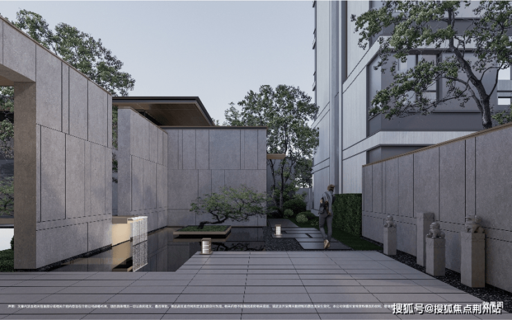 在社区景观的打造上,以江南古典园林为蓝本,汲取宋氏美学中“引、礼、廊、趣、赏、院”六大设计元素,园林遵循“一园三堂”的手法,打造可行、可塑、可游、可居的东方意境,营造繁华中的栖心之所。