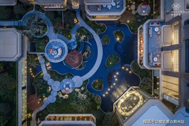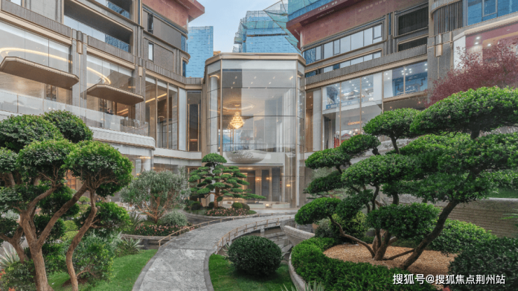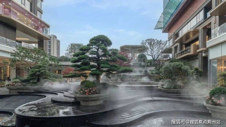 再看立体感的下沉式庭院,搭配各种石材、水系和罗汉松,层次极为丰富,自带高颜值,不管哪个角度看,都美炸了。